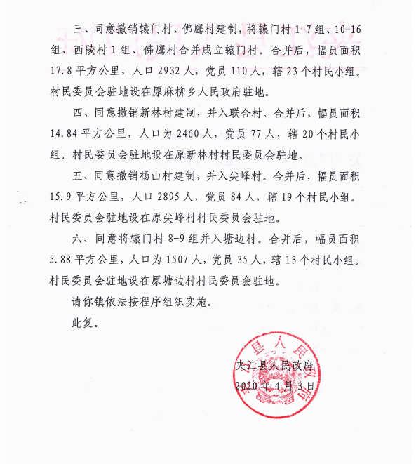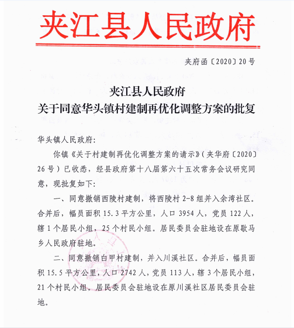 夹江县人民政府关于同意华头镇村建制再优化调整方案的批复