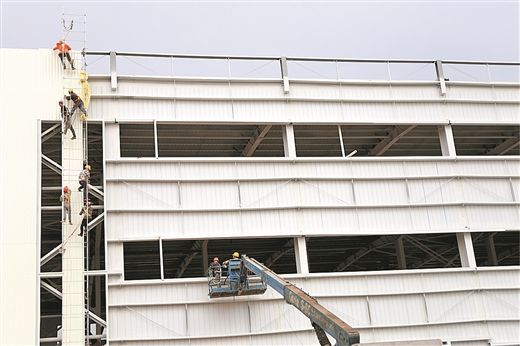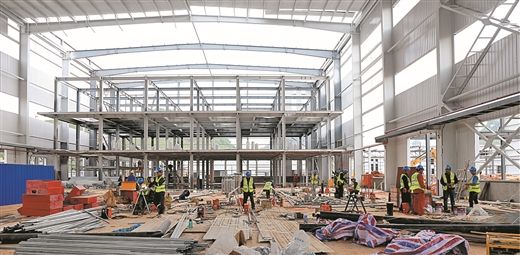 整个园区占地面积122亩,总投资5.58亿元,是自治区级重点项目。项目主要建设7栋标准厂房以及综合办公楼、质检站,新建一座污水提升泵房和一条工业排污管道,同时配套建设辅助用房、公用工程站、装卸站、泡沫站、污水处理站、危废暂存间、初期雨水池、消防泵站等附属工程。为了按照预定的时间节点完成建设目标,园区里每天都有400多名工人施工。“厂房有厂房施工组,道路有道路施工组,设备有设备安装组,大家各司其职,都在按照预案有条不紊推进施工进度。”施工负责人说。