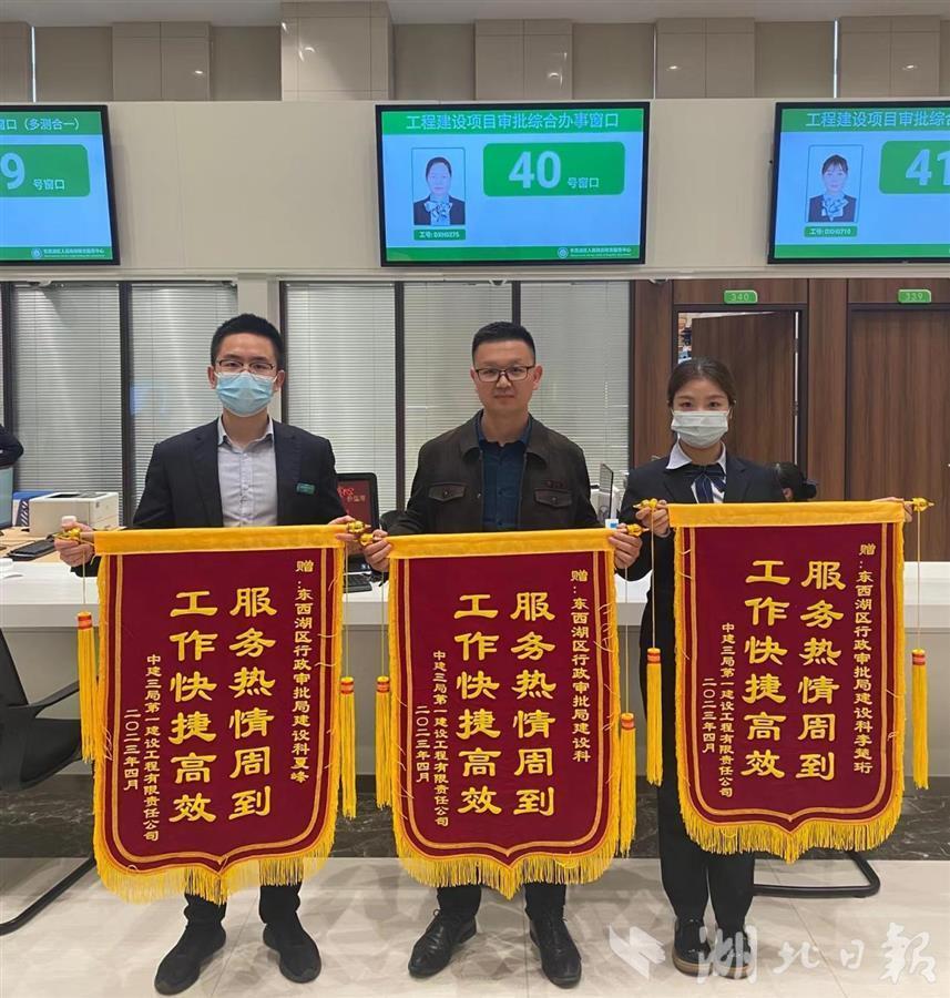 湖北日报讯(通讯员易斌)近日,武汉临空港经济技术开发区工业资产经营有限公司负责人为东西湖区建设工程项目审批科的工作人员送来锦旗,企业负责人深有感触地说,“进展很快,每个环节都让人省心,现在推出‘多证联办’措施,为公司抢抓先机创造了条件,审批效率远远超出了我们的想象”。