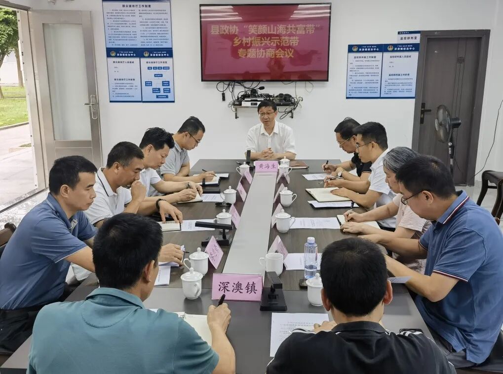 5月6日上午,南澳县政协在深澳镇政府一楼会议室召开 “笑颜山海共富带”乡村振兴示范带专题协商会议。县政协主席黄海生主持会议,县政协领导林泽红、蔡伟强、陈桌洧、柯耀南,县农业农村和水务局、后宅镇、深澳镇等单位负责人参加会议。