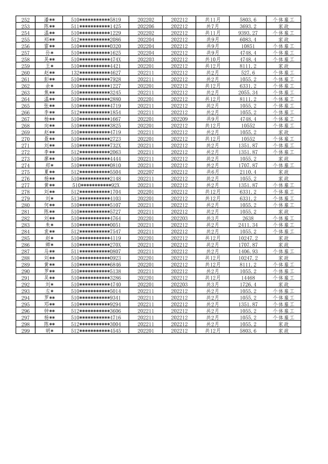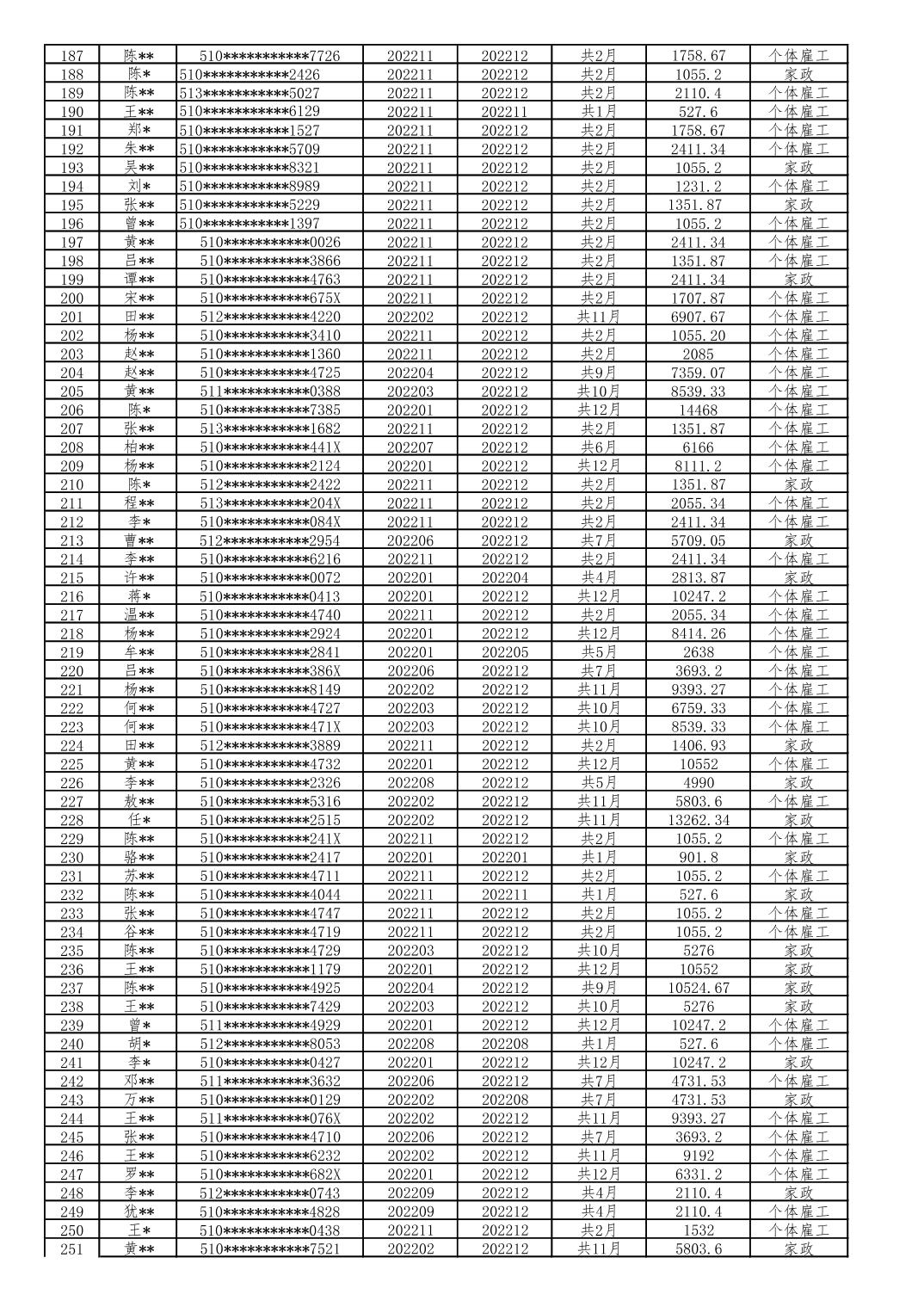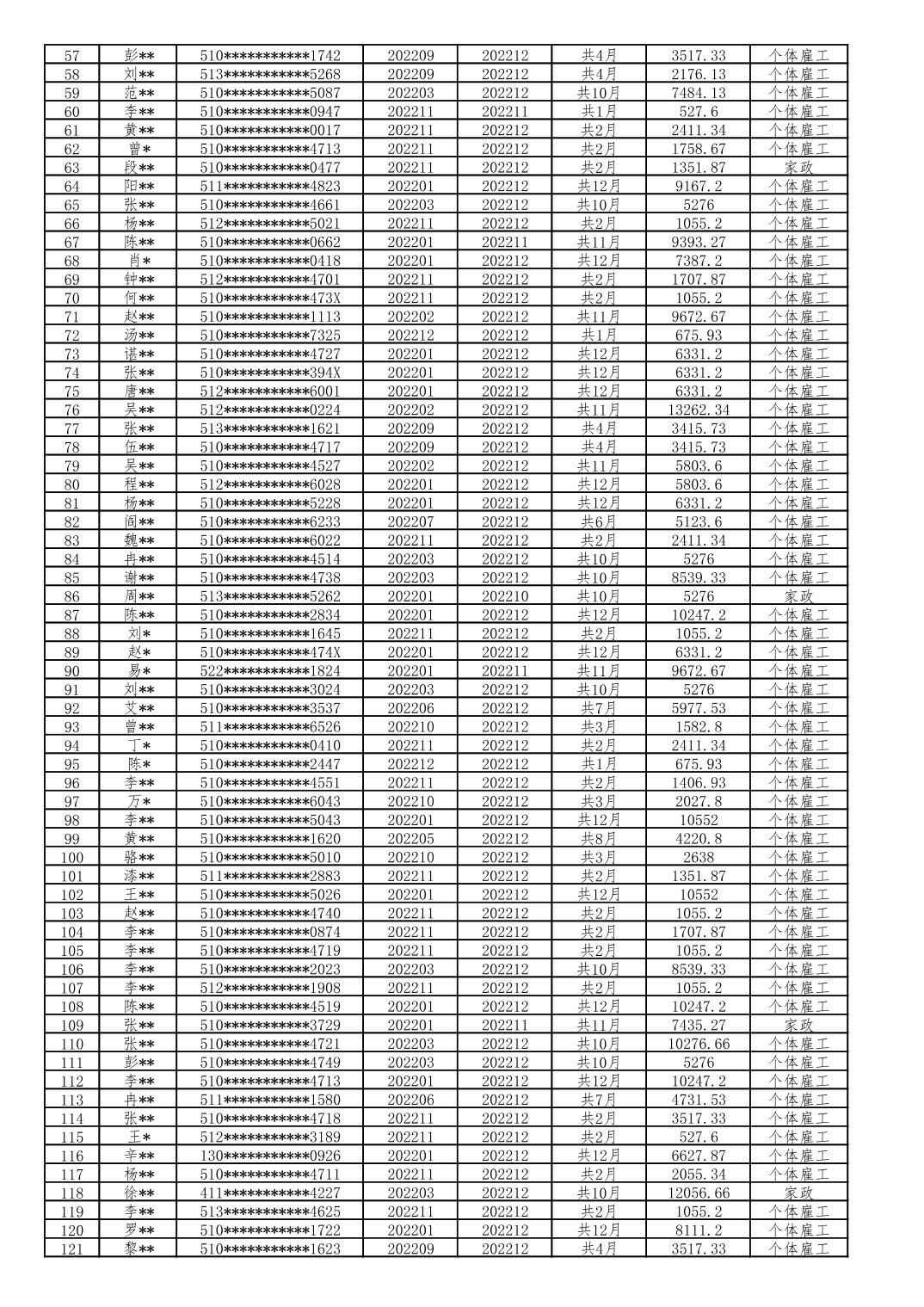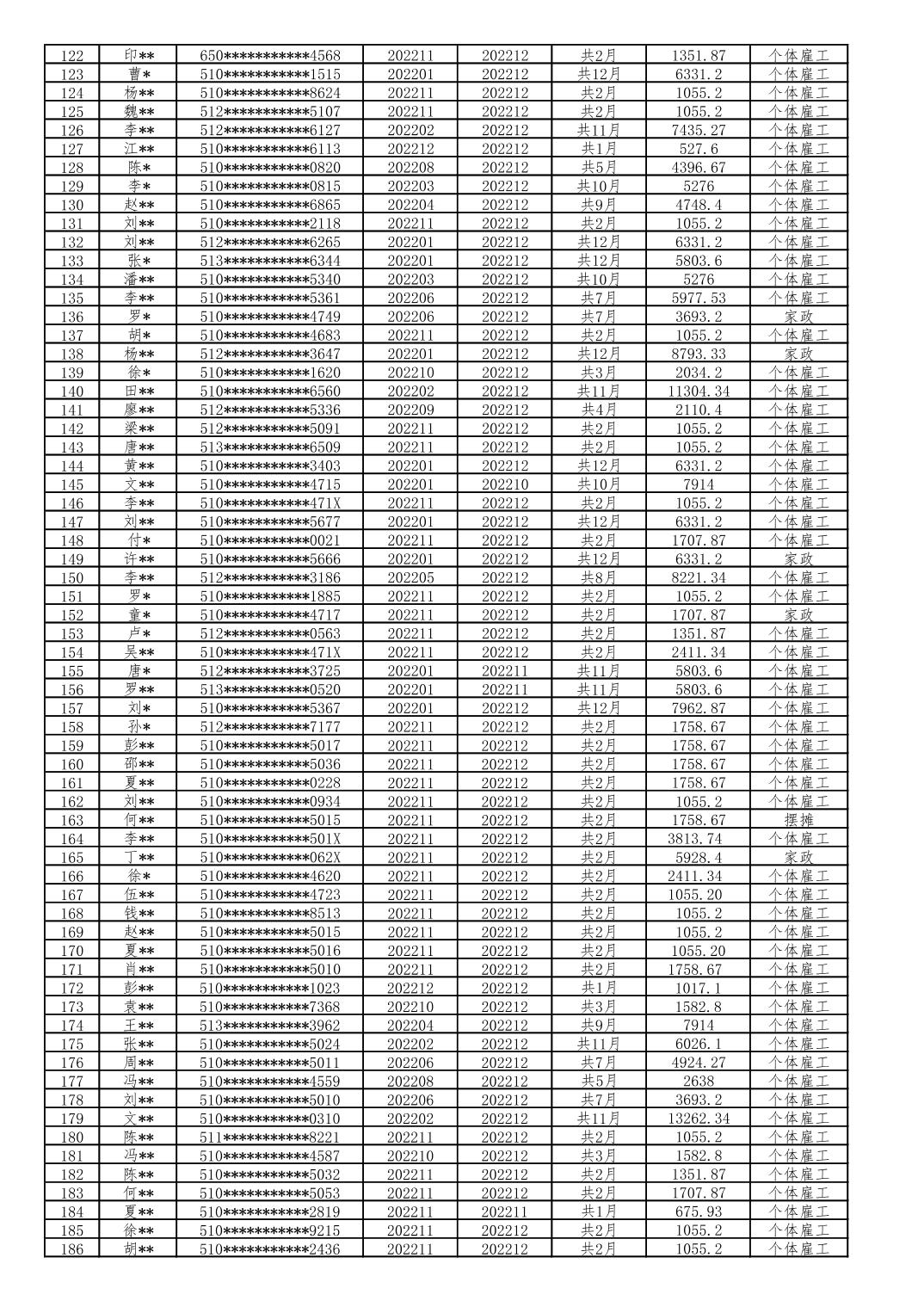 大渡口区 2022年1月至12月享受灵活就业社会保险补贴人员(第一批)公示