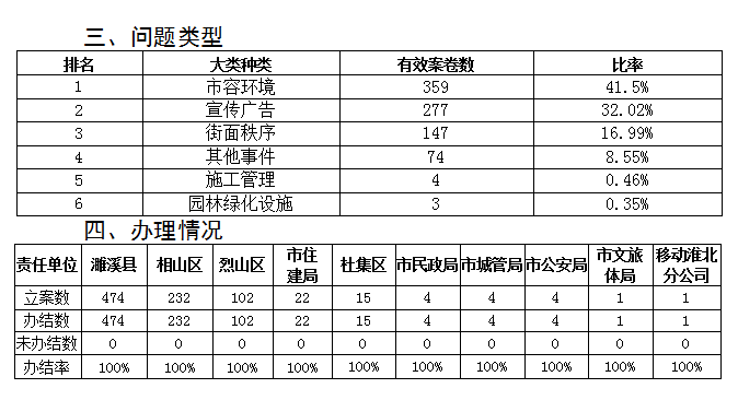 淮北市智慧城管微信举报平台2023年4月份运行情况公示