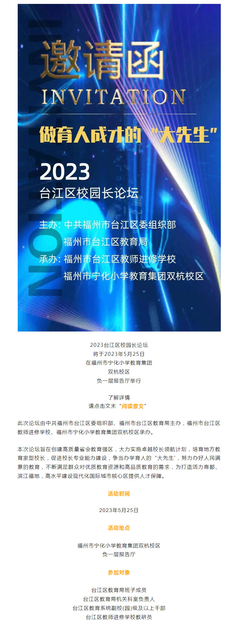来自台江教育的邀请函,请查收!