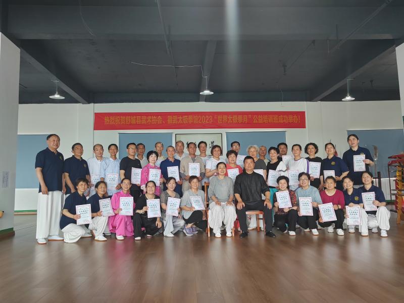 为庆祝今年五月份“世界太极拳月”的到来,弘扬中华民族传统武术文化,推广世界非物质文化遗产太极拳项目,促进全民健身事业快速发展,在县体育主管部门批准同意和精心指导下,舒城县武术协会徽武太极拳馆于5月20至21日集中举办了为期2天的“2023世界太极拳月太极拳公益培训班”。全县五十余名太极拳爱好者在舒城县徽武太极拳馆参加了本次公益性免费学习培训活动。