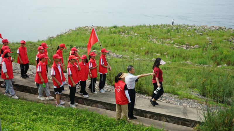 在长江边上,碧水卫士志愿者和全体师生还开展了“亲清长江”岸线垃圾清理志愿活动。