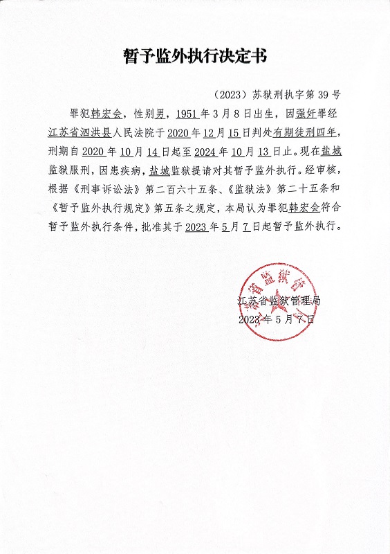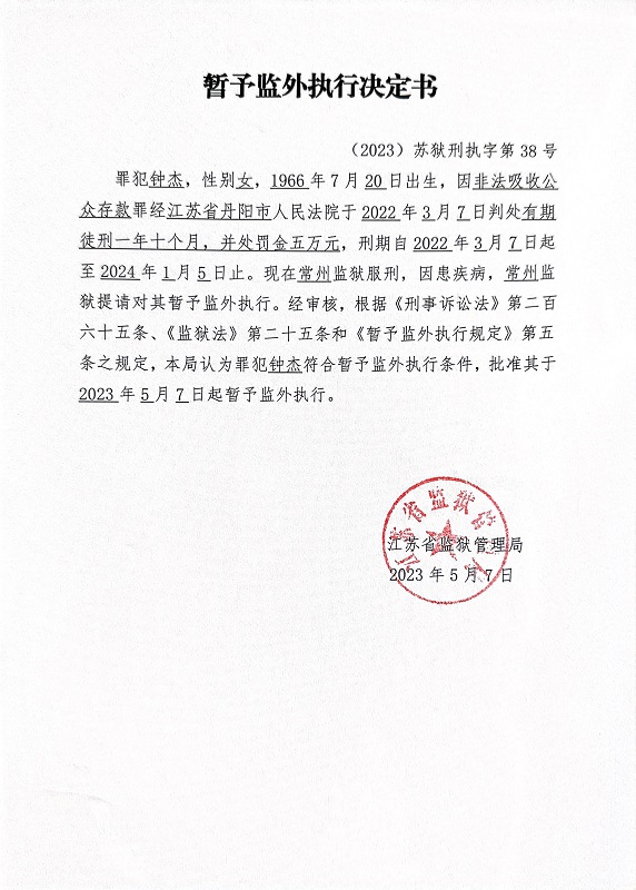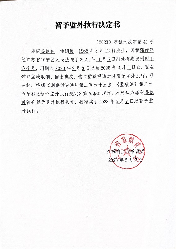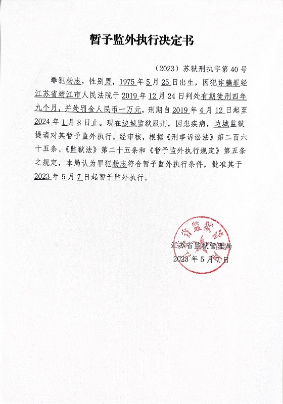 暂予监外执行决定书(2023)苏狱刑执字第038-041号
