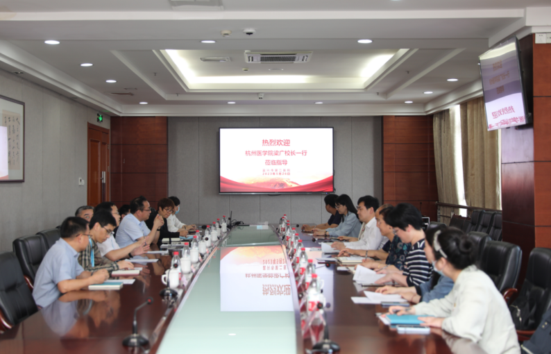 嘉兴市第二医院党委书记沈瑞林、副院长宗酉明、副院长韩炳江及相关部门负责人参加了座谈会。会上,沈瑞林向梁广校长一行的到来表示热烈欢迎,宗酉明从专业技术、学科特色、亮点工作等方面介绍了医院的基本情况。