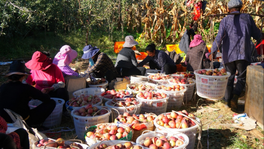 ▲盐源苹果上市季节用工需求旺盛,当地采摘工的工资达到两三百元一天。李里 摄