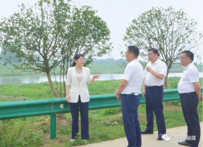 在高桥河巡湖并调研防汛抗旱、河湖管护试点、入湖口围网种草工作开展情况