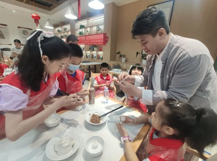 “是这样吗?”“我想再看一遍”......活动现场,来自苍霞本土的非遗项目福州耳聋伯元宵第四代传承人林威来到现场带领孩子们制作元宵。孩子们揉捏着手里的面团,纷纷好奇地发问。林老师认真细致地“手把手”指导孩子们擀面团,制作元宵。孩子们也带着好奇的小眼神学习着、体验着,从中感受非遗技艺的魅力。