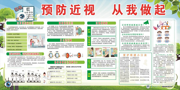 展主题栏目。通过“预防近视 从我做起”主题宣传栏,加大宣传力度,提高学生的重视度,了解爱眼护眼的基本常识。