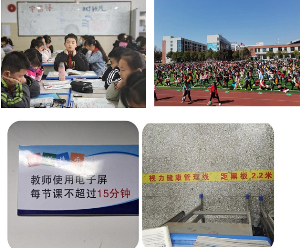 除此之外,学校在常规教学中也十分重视呵护学生眼睛:不断改良教学条件,为学生创建良好的视觉环境;组织学生做好眼保健操,开展丰富多彩的阳光大课间活动……