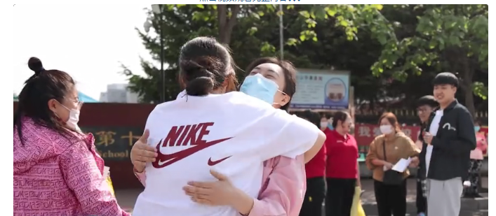 而在考点外,送考老师支起横幅,为考生们鼓劲加油,相互拥抱的温暖场景让人动容。在警戒线外和往年一样挤满了接送孩子的家长,有些考生的妈妈还穿着红色旗袍送考。她们表示,旗袍寓意旗开得胜,红色寓意开门红,她们希望自己的孩子能够在考场上全力以赴,不留遗憾。