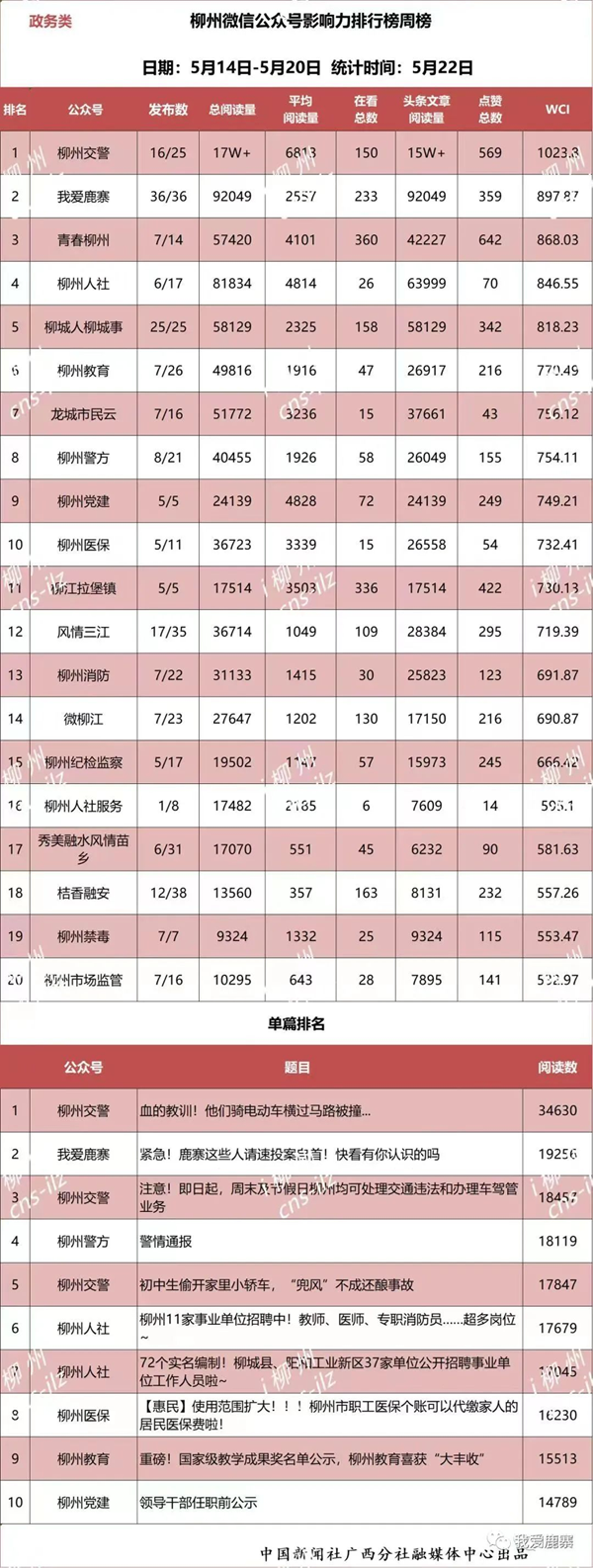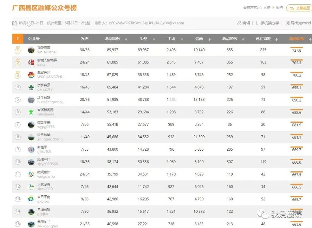 此外,“我爱鹿寨”微信公众号也晒出了喜人成绩单。2022年,柳州市互联网信息办公室发布柳州市网络信息内容生态指数微信总榜,“我爱鹿寨”微信公众号在柳州市收录的200多个微信公众号中脱颖而出,其中,第四季度连续三个月上榜前十,《厉害啦,鹿寨这个村!是你的家乡吗》推文荣登12月份微信正能量推荐榜;由中国新闻社广西分社融媒体中心每周发布的“柳州微信公众号影响力排行榜”,“我爱鹿寨”微信公众号在参评的400多个公众号中长期占据政务类榜单前五;在广西县区融媒公众号榜单中,“我爱鹿寨”微信公众号长期位列前五,用实力展现了“我爱鹿寨”微信公众号的影响力、引导力、传播力、公信力。