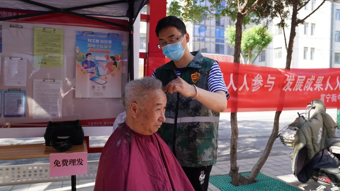 同样,在新华街裕民社区的裕民小区院内,便民服务大集活动也在如火如荼地开展。在义诊区,医务人员细心地为社区居民测量血压、检测血糖,耐心地咨询他们的日常生活习惯及身体状况,并针对病情作出专业性诊断;在义剪区,理发师认真地为每一位前来的老人剪发,并亲切地和他们唠家常,娴熟的理发手法和贴心的服务让老人们倍感温暖。现场还有免费的法律咨询、政策宣传等,面对面为社区居民答疑解惑。