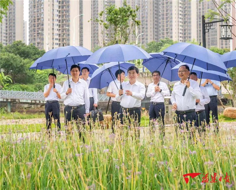 6月10日,周祖翼在龙岩市新罗区东山湿地公园调研。