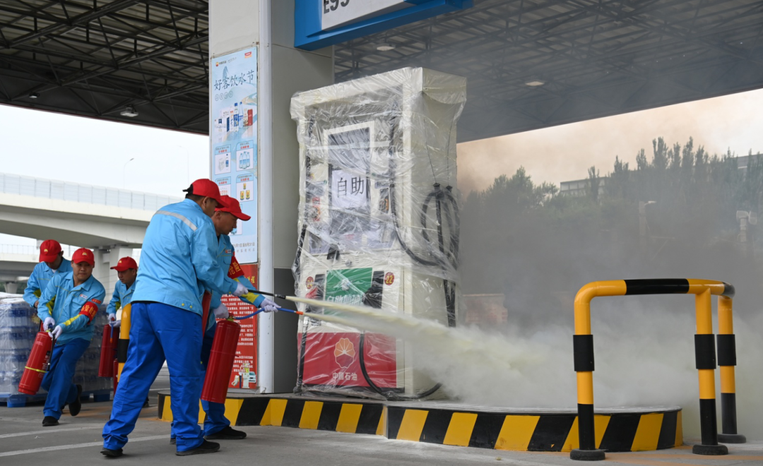 “着火了,着火了!” 9时15分,正处于正常营业状态的中国石油吉林长春销售分公司宽平加油站突然传来工作人员的紧急报告。接到报告的站长马上启动应急预案,站内所有员工停止作业,通讯联络组紧急拨打119、120等急救电话,并将站内加油车辆及时引导出站外;抢险救援组一边利用手持灭火器对准加油机起火点进行喷射灭火,一边使用推车式灭火器进一步阻截火势,消防车辆第一时间赶到现场并展开扑救,120救护车和电力部门也随后赶到现场开展救援工作。在各部门的通力合作下,大火被成功扑灭,应急演练结束。