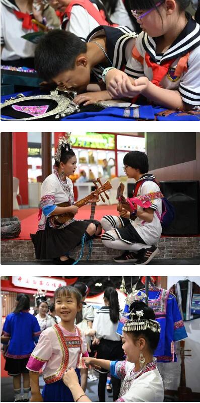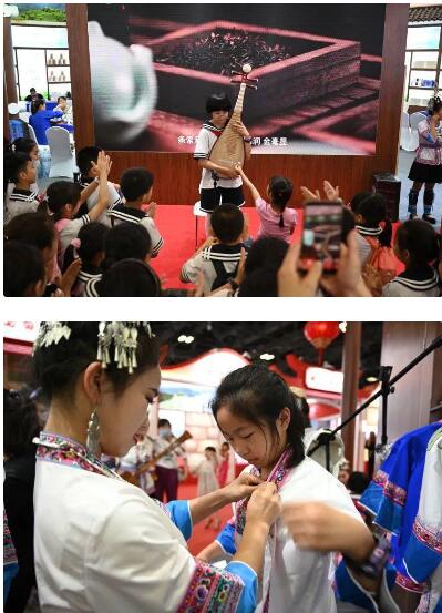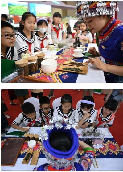 同学们还来到了湖北省宜昌市五峰土家族自治县的展区体验土家族的茶文化。
