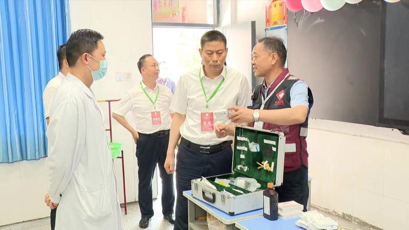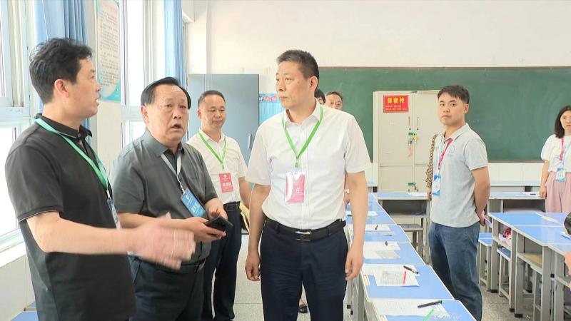 孙进一行现场巡视考点及周边环境状况,深入了解考场安排、安全保卫、医疗卫生等方面工作准备情况。