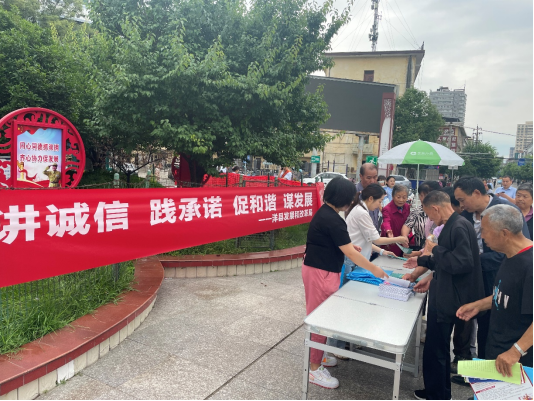 为进一步加强社会信用体系建设,提升广大群众诚信意识,6月15日,洋县发改局开展“讲诚信 践承诺 促和谐 谋发展”信用宣传活动。