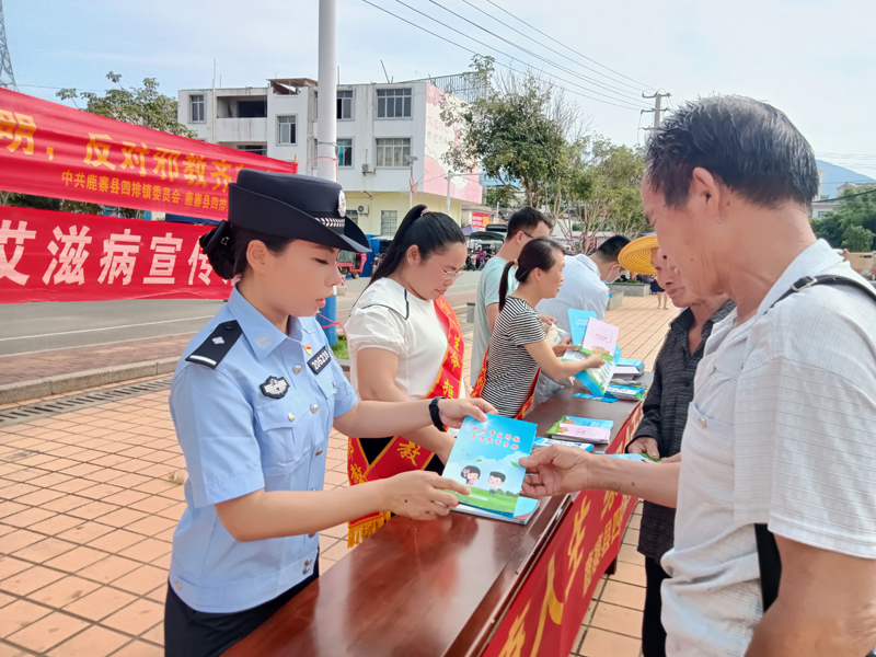 为进一步普及反邪知识,增强全民反邪意识,推动平安四排建设,6月15日上午,四排镇组织镇团委、镇妇联、镇防艾办、镇禁毒办和四排派出所等部门,在镇中心广场集中开展反邪教知识宣传活动。