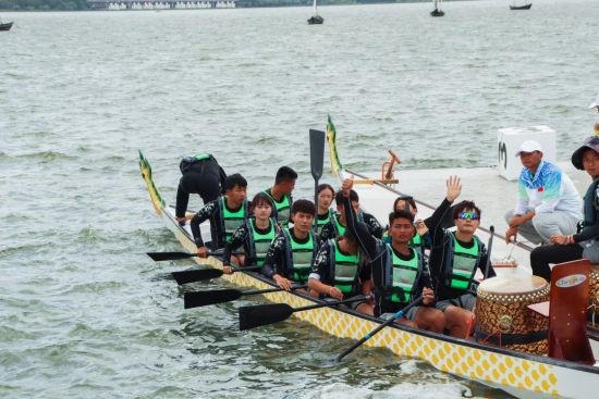 “划桨时,手高了不行,低了也不行,龙舟比赛非常讲究协作,团队里面的每一个人都至关重要。”云南师范大学女子龙舟队副队长陈浪用“团结”一词形容龙舟运动,“我们龙舟队就像一个大家庭,平时训练再苦再累都一起咬牙坚持,团结起来克服实际遇到的各种困难。”仅仅联合集训了一个月左右,这支主要由大一体育新生组成的龙舟队奋力在专业组里劈波斩浪。鼓手张梅回忆起女子200米决赛现场时,依旧难掩激动,“终于过线了!第三名的成绩来之不易,每个人在这场比赛当中都拼尽全力,就算再累划桨的手都不停歇。”比赛的高密度和高强度让张梅说话时的嗓子略显沙哑。