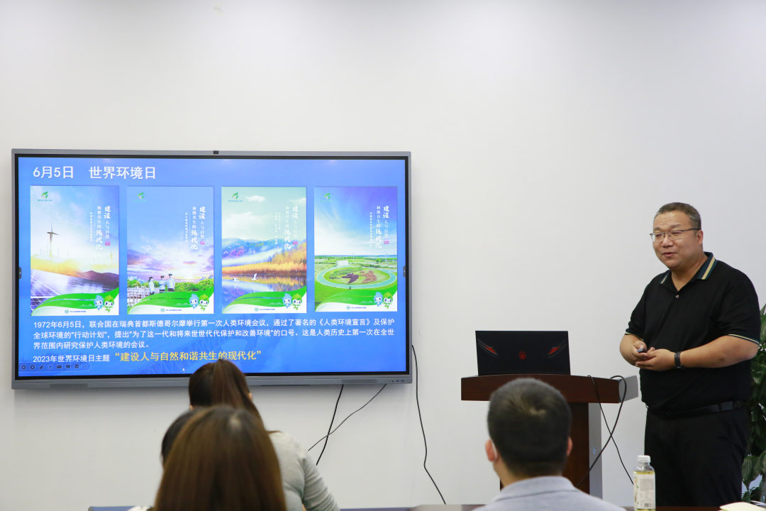 此次环保讲座中,科技中心徐栋博士主讲“城与自然——建设人与自然和谐共生的现代化”科普报告,从多方面为工作人员深入浅出地讲解了城市与自然的关系,介绍了武汉市临空港地区丰富的水资源禀赋及生物多样性的独特魅力。