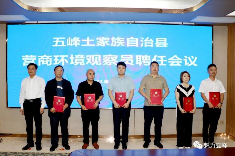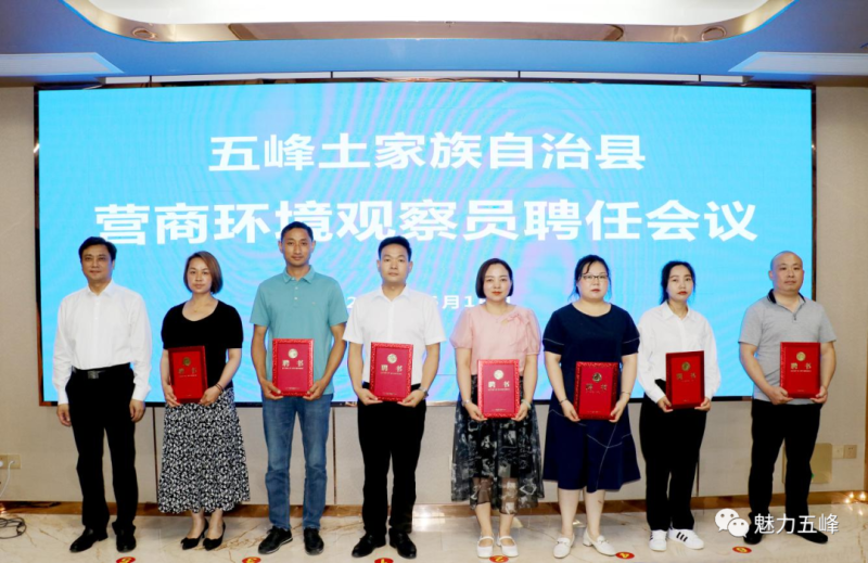 6月16日,全县营商环境观察员聘任会议在武汉·五峰民族工业园召开,为首批26名观察员颁发聘书。