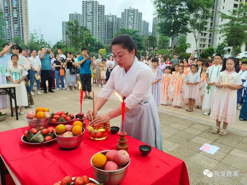 此次活动由县文明办、县文体广旅局和县妇联主办,县图书馆承办。在鹿鸣湖公园水景平台,大家身着传统服饰,整齐站立在摆满粽子、鸡蛋和水果的祭祀台前,认真听主持人介绍古代先贤屈原的故事和端午节的由来,一同诵读端午祭文,表达对屈原的敬仰怀念之情。随后,赞礼、净手、行初献礼、行亚献礼、行终献礼、燃香祝愿等一系列流程庄严肃穆,寄托祈求风调雨顺、丰收美满、迎祥纳福、辟邪除灾的美好期盼。