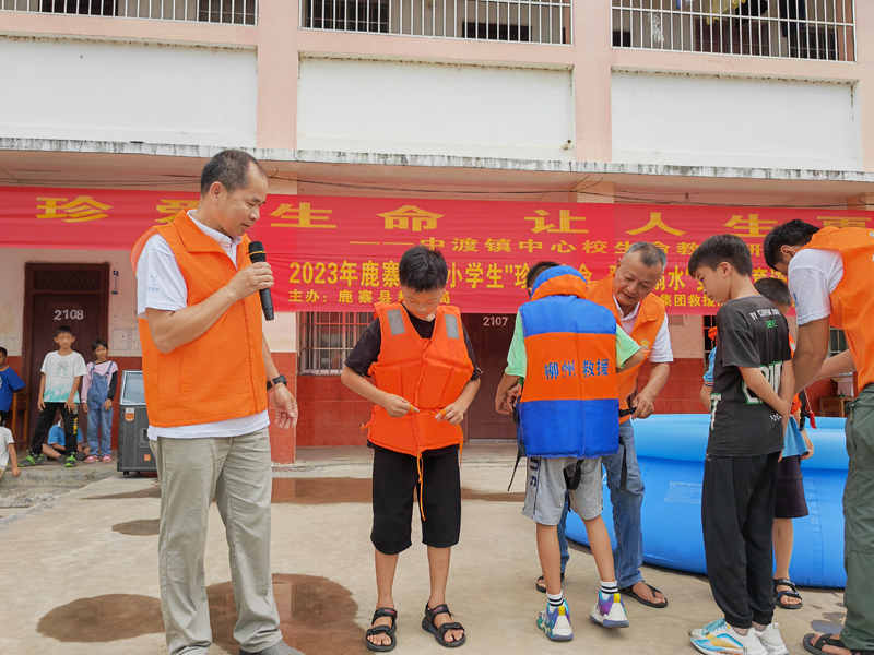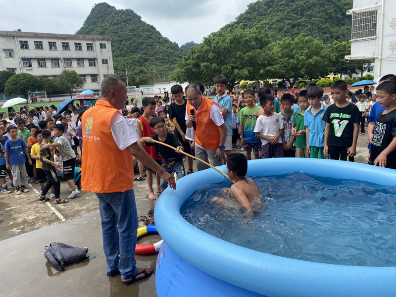 活动现场,柳州市救援队的教练们结合现实生活中真实发生的溺水案例,采取互动问答、现场实践等方式,为全校师生系统讲解防溺水相关知识,引导学生将防溺水安全知识牢记于心。教练们还为学生们演示救生衣正确穿戴方法和水中突然抽筋自救方法,并现场指导学生穿戴救生衣和练习自救。