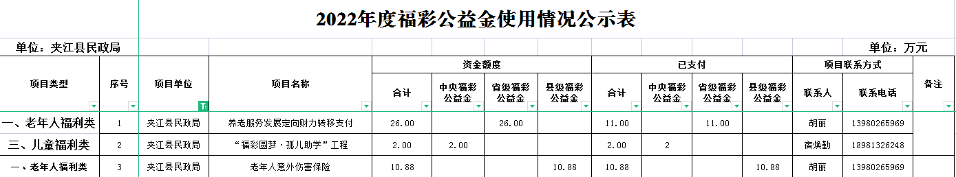 夹江县民政局关于 2022年度福彩公益金使用情况的公示