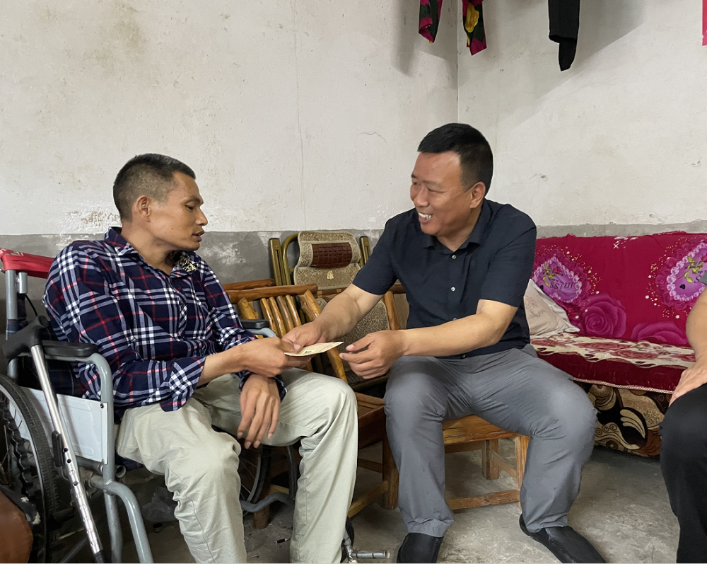 今年43岁的喻晏良,十多岁的时候因为脑出血导致中风偏瘫,失去劳动能力。在走访入户的时候,罗江伯详细了解他近期生活和身体状况,询问生活中所面临的困难,并送上过节物资和慰问金。同时鼓励他要坚定信心,积极乐观面对生活,相信有党和政府的关心关爱,生活会越过越好。