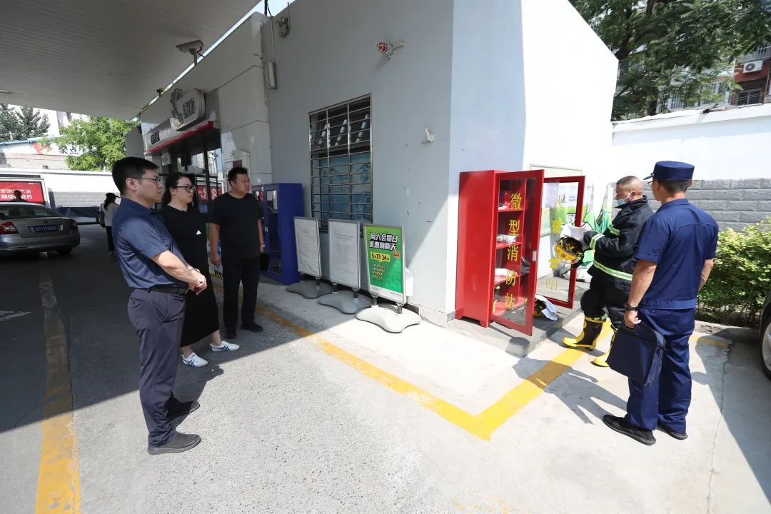 在中石化甘露园加油站,街道工委书记闫培文一行查看了微型消防站的设备设施情况。他强调,安全工作是一项永恒的课题,大家要高度重视,不断提升消防安全风险管控能力,始终紧绷安全弦,做到人人讲安全,个个会应急。