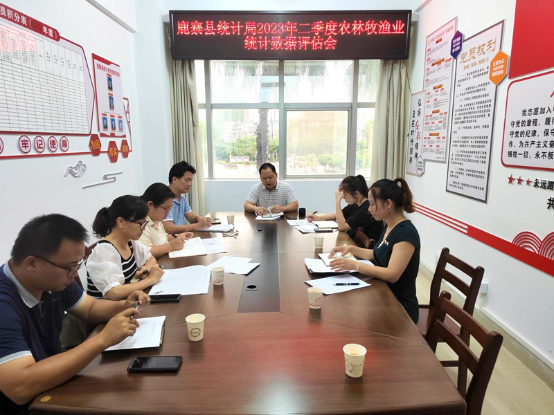 6月25日上午,鹿寨县统计局召开2023年第二季度农林牧渔业统计数据评估会。县社会经济调查队、县农业农村局、县林业局及国家统计局鹿寨调查队的负责人参加会议。