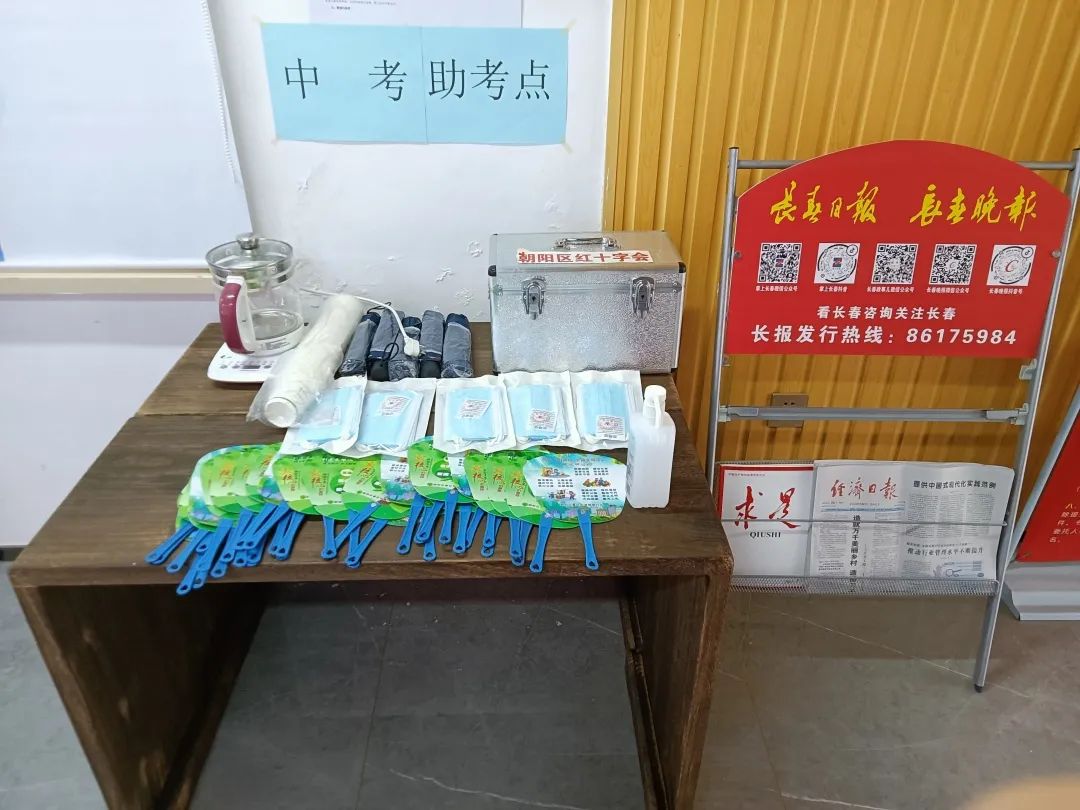 新华社区辖区内长春市第三十中学为中考考点,新华社区新时代文明实践站为考生及家长提供雨伞、报纸、休息桌椅、杂志、充电服务等物品和便民服务,同时,社区还组织工作人员和志愿者到考点为学生和家长发放扇子等清凉用具。