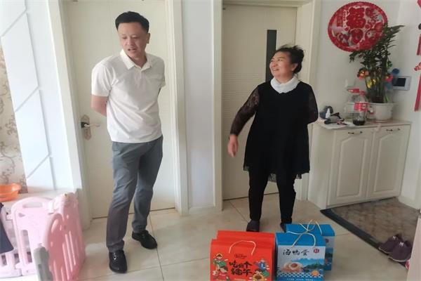 光明街道领导班子深入辖区脱贫户家中,为他们送去粽子、鸭蛋等节日物资。