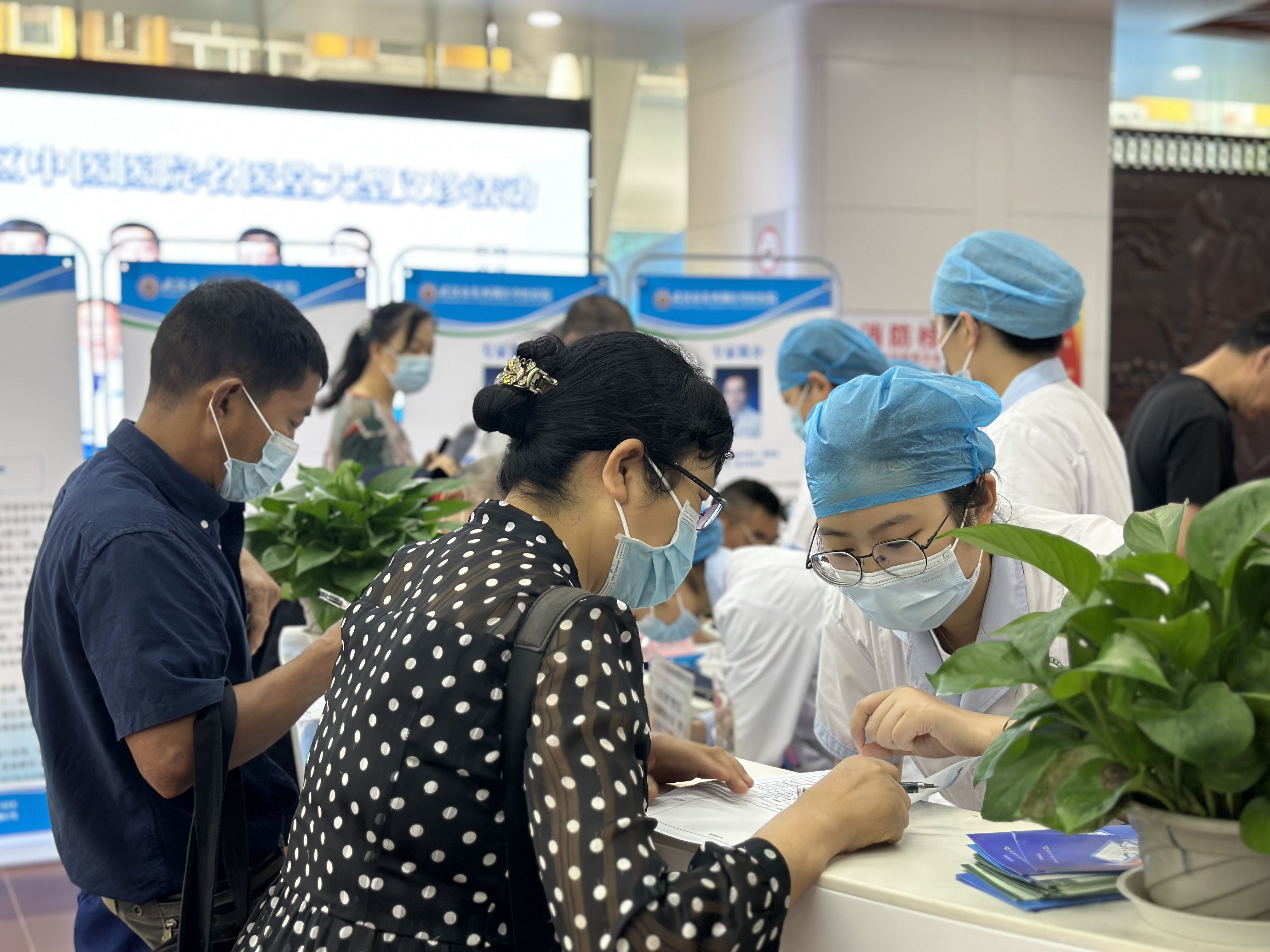 6月25日上午,华中科技大学同济医学院附属同济医院(简称“同济医院”)知名医疗专家团队的9名医生来到东西湖区中医医院坐诊。