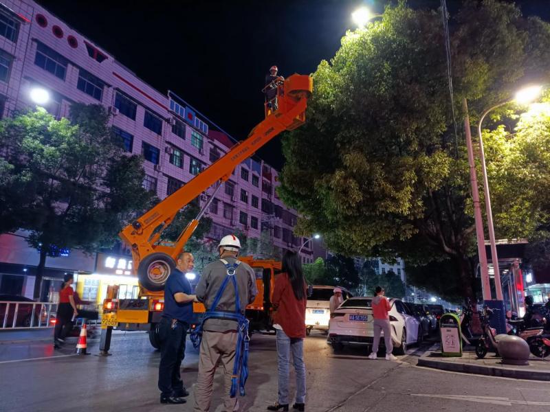近年来,为扎实做好设施检修工作,市政中心组织相关人员对城区道路路灯、夜景设施进行全面检修,及时消除路灯隐患,确保路灯亮化设施稳定运行。