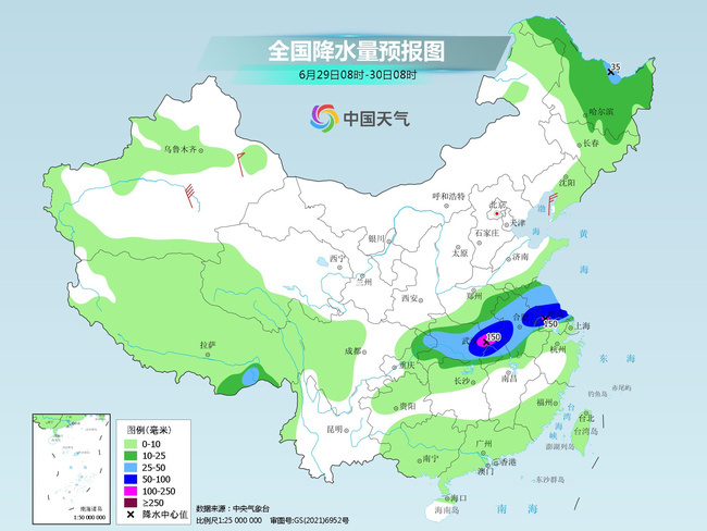 明天,南方降雨继续增强,北方主要降雨区域将向东北转移。预计,东北地区北部、黄淮南部、江淮大部、江汉大部、重庆东北部等地部分地区有中到大雨,其中,河南南部、湖北北部和东部、安徽中部、江苏中南部等地部分地区有暴雨或大暴雨(100~150毫米)。