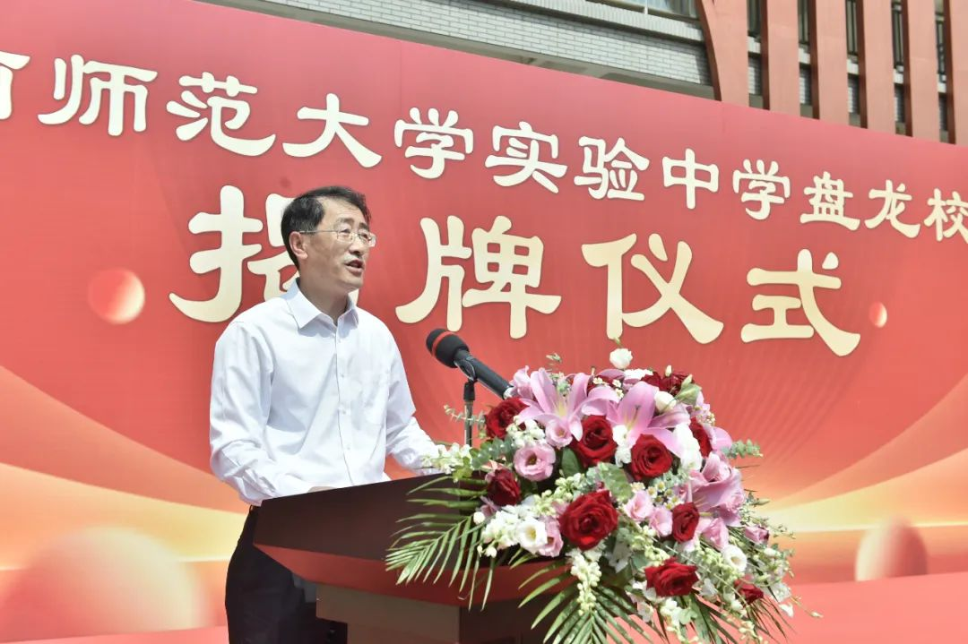 他希望云南师范大学实验中学紧盯教学、开拓创新、提升质量,把先进的教育理念、办学模式、教学方法带到盘龙校区,以优质的教育教学质量惠泽学生、惠及群众,为盘龙教育高质量发展贡献力量。