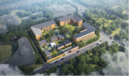 中福天河场景化认知症照护养老机构为专门针对认知症长者设计的场景化认知症友好社区,占地面积10985㎡,建筑面积10523㎡,园区以情景街区、疗愈景观和“Enjoy home”居住组团构成,可提供约150间房间,目前已开工,计划于2024年投入运营。