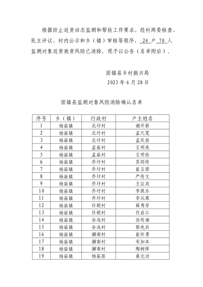 固镇县监测对象风险消除确认名单公告