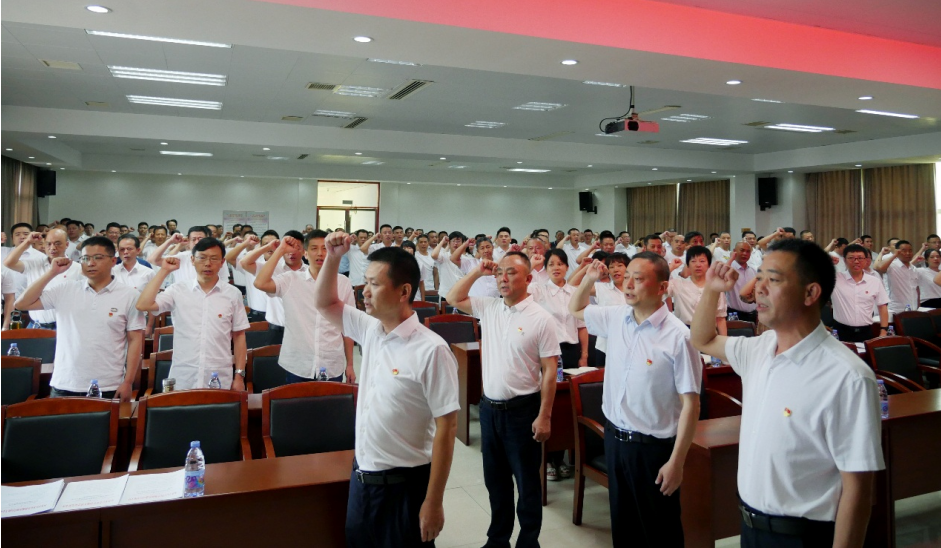 会议现场奏唱国歌,观看红色教育电影《红色摇篮》,合唱红歌《团结就是力量》,全体党员干部重温入党誓词,曹志刚同志宣读了《关于表彰优秀共产党员、优秀党务工作者、先进党支部的决定》,对53名共产党员、2名党务工作者和8个党支部进行了表彰。