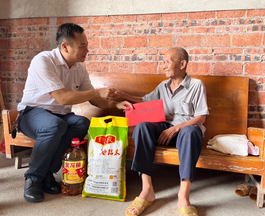 随后,全体党员到寨沙镇板江村走访慰问2名困难退役军人和2名老党员,为他们送上慰问金和慰问品,详细询问他们的身体健康、生产生活情况,叮嘱他们做好防暑降温工作,注意身体健康,同时努力发展产业,用勤劳的双手,创造美好生活。