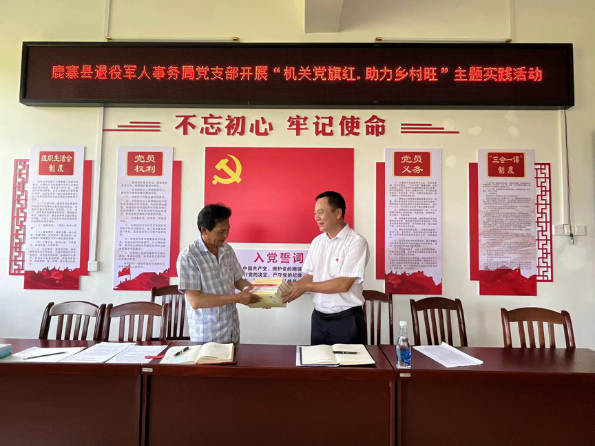 县退役军人事务局还给板江村党总支赠送了一些学习书籍,并与村干座谈,就基层党建、乡村振兴等工作进行了交流探讨。(罗艳华)