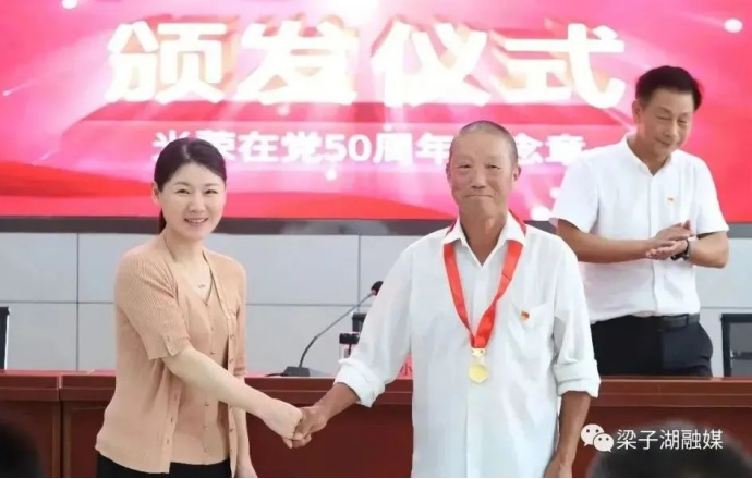 在磨刀矶村党员群众活动中心,会议依次完成了各项规定动作,组织全体党员认真传达学习了习近平总书记重要讲话和指示批示精神。随后,窦小华为2023年党龄满50年老党员颁发了“光荣在党50年”纪念章。