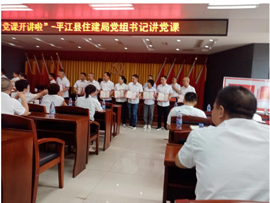 树标杆,召开表彰大会。6月29日,该局组织住建系统全体党员召开了党员大会。会上,表彰了王芳等53名优秀共产党员、何阜龙、钟子昂两名优秀党务工作者、中共平江县住建局机关一支部委员会等8个先进党支部。机关党委书记曹志刚要求,受到表彰的党组织和党员要珍惜荣誉、戒骄戒躁,再接再厉、再立新功。住建系统各级党组织和广大党员要以先进典型为榜样,更加紧密团结在以习近平同志为核心的党中央周围,增强“四个意识”,坚定“四个自信”,做到“两个维护”,担当作为,真抓实干,为住建事业作出新的更大贡献。