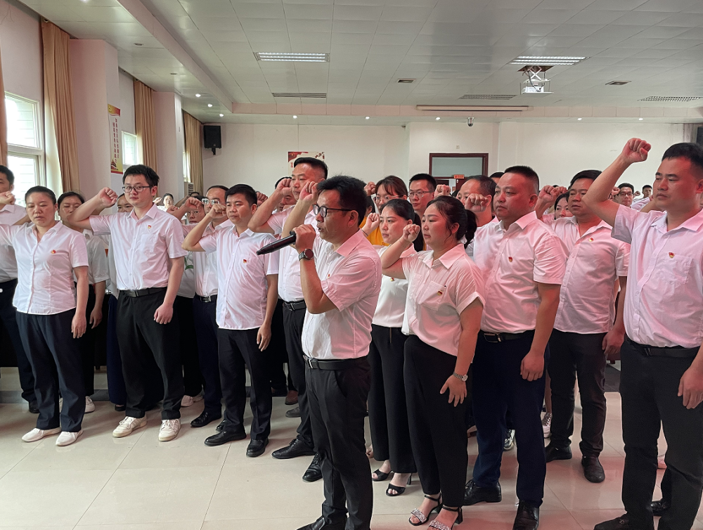 大会在庄严的国歌中拉开了序幕。会议对一批先进基层党组织、优秀党务工作者和群众身边好党员进行了集中表彰,宣读了2023年预备党员和转正党员批复,举行了新党员宣誓仪式,老党员重温入党誓词。亿明新材支部书记郑主宜和麻辣王子支部徐敏分别代表先进党组织和群众身边好党员作了典型发言。