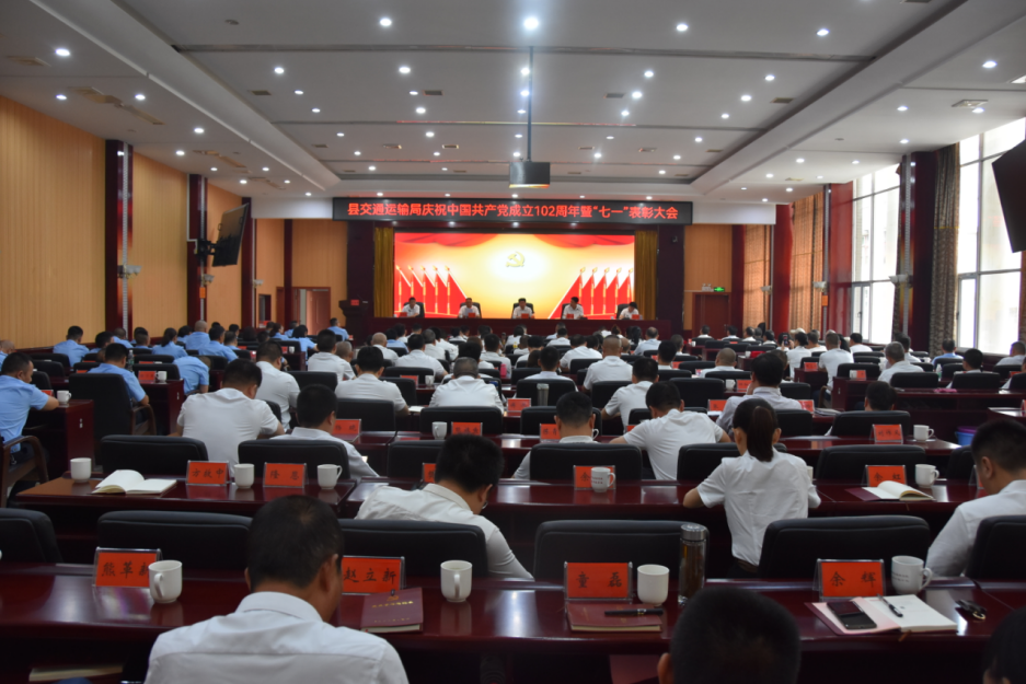 为庆祝中国共产党成立102周年,表彰先进,弘扬正气,激励全系统广大党员干部、党务工作者和各级党组织牢记初心使命,更好担当作为。6月30日,县交通运输局召开庆祝建党102周年暨“七一”表彰大会,局党组副书记、副局长王沅江主持会议,局属各党组织在职党员、退休党支部党员代表,新发展、转正党员参加会议,局党组书记、局长赵淼涛参加并讲话。
