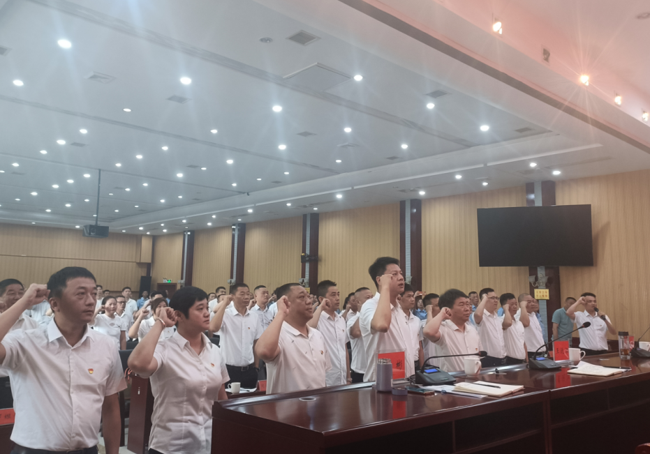 表彰大会在庄严的国歌声中拉开帷幕。会上,局党组成员、副局长任坚宣读了对3个先进基层党组织、36名群众身边好党员和4名优秀党务工作者予以通报表彰决定,为“在党50周年”老党员和受表彰的集体、个人颁发纪念章和奖牌;局党组成员、副局长罗彬宣读了3名预备党员、5名转正党员批复,新党员代表作了表态发言,局党建办主任傅南朝带领预备、转正党员在党旗下进行了庄严宣誓,全体与会党员高举右手重温入党誓词,再次接受心灵的洗礼,谨记为党的事业奋斗终身的初心。